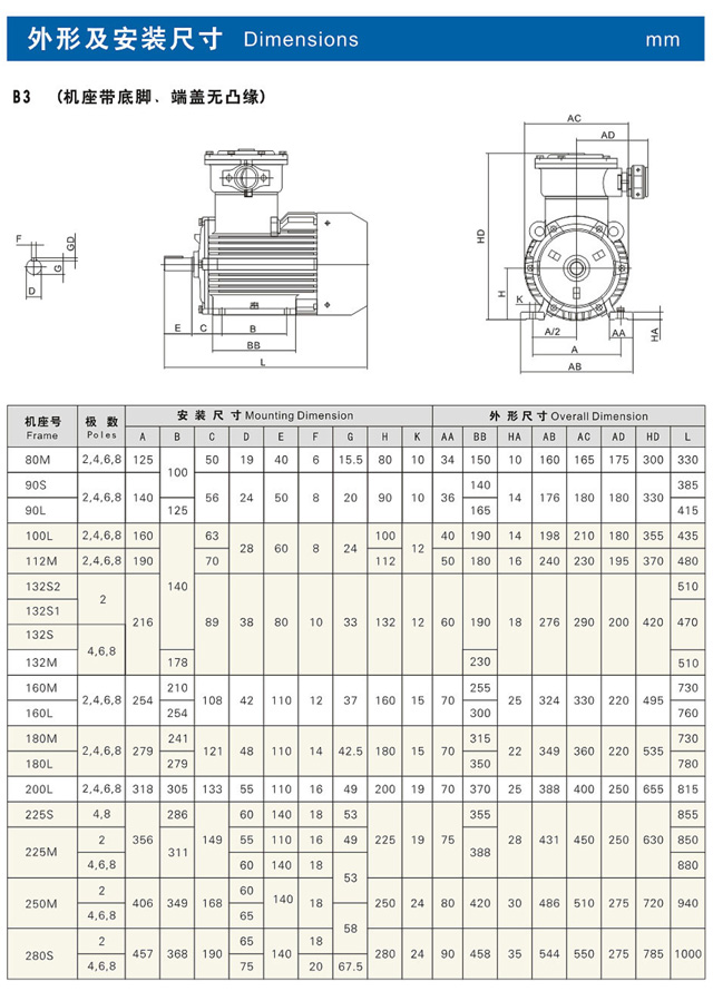 防爆電機型號:YBX3/YBX4(三級或二級能效)