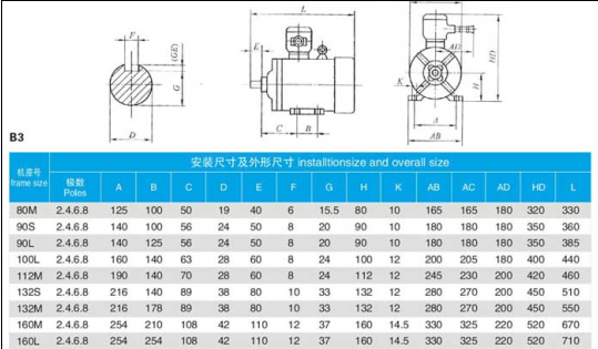 B3的安裝參數(shù)是有兩個(gè)端蓋式軸承,有底腳,有軸伸,借助底腳安裝在基礎(chǔ)的結(jié)構(gòu)構(gòu)件上。