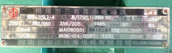 今天上午有個(gè)客戶打來(lái)電話詢問(wèn)是否有YB2系列4P200KW防爆電機(jī)的現(xiàn)貨,我說(shuō)有的。然后我就把YB2系列4P200KW防爆電機(jī)的銘牌給客戶發(fā)過(guò)去了。然后客戶需要回去商量一下,下面為大家列出YB2系列4P200KW防爆電機(jī)的銘牌。如果大家有需要購(gòu)買YB2系列防爆電機(jī),可以和我們河南省南洋防爆電機(jī)生產(chǎn)廠家聯(lián)系,我們會(huì)為您竭誠(chéng)服務(wù)的。