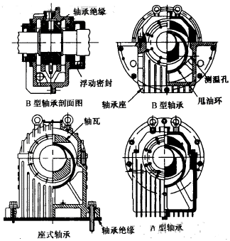 滑動(dòng)軸承作為防爆電機(jī)的主要部件,其開發(fā)設(shè)計(jì)及制造技術(shù)在近年來有了很大的發(fā)展,F(xiàn)已發(fā)展成為一個(gè)成熟的產(chǎn)品,并且已系列化、標(biāo)準(zhǔn)化、通用化,有專業(yè)的滑動(dòng)軸承生產(chǎn)廠。在防爆電機(jī)中使用的滑動(dòng)軸承主要有以下幾種類型:A型端蓋式球面滑動(dòng)、B型端蓋式球面滑動(dòng)、座式球面滑動(dòng)軸承。