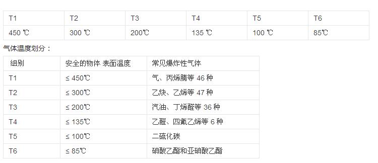 6、溫度組別:可燃?xì)怏w的引燃溫度電氣設(shè)備的最高溫度。