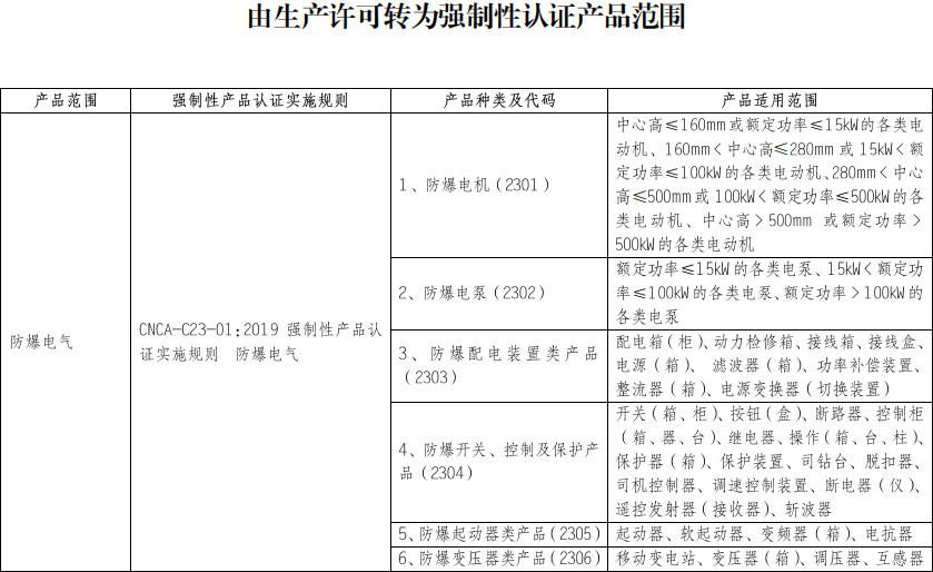 按市場(chǎng)監(jiān)管總局2019年34號(hào)文要求,自2019年10月1日起,防爆電氣產(chǎn)品納入CCC認(rèn)證管理范圍。2020年10月1日前,國內(nèi)企業(yè)生產(chǎn)的以上產(chǎn)品應(yīng)憑有效生產(chǎn)許可證或CCC認(rèn)證出廠、銷售或在其他經(jīng)營活動(dòng)中使用。對(duì)于已獲生產(chǎn)許可證的企業(yè),若以上產(chǎn)品在2020年10月1日(含)后不再繼續(xù)生產(chǎn)的,無需辦理CCC認(rèn)證;否則,應(yīng)盡快提交認(rèn)證委托,并在2020年10月1日前獲得CCC認(rèn)證。