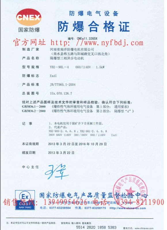 河南省南洋防爆電機(jī)有限公司視質(zhì)量為生命,奉用戶為上帝。一貫遵循對(duì)每一道工序負(fù)責(zé),對(duì)每一臺(tái)產(chǎn)品負(fù)責(zé),對(duì)每一位用戶負(fù)責(zé)的質(zhì)量方針。擁有國(guó)內(nèi)最先進(jìn)的工藝裝備和質(zhì)量檢測(cè)裝備。按照質(zhì)量計(jì)劃和質(zhì)量控制加工、制造和檢測(cè)第一個(gè)零部件。對(duì)產(chǎn)品進(jìn)行最終檢驗(yàn)和性能測(cè)試。三證齊全的防爆電機(jī)生產(chǎn)廠家。